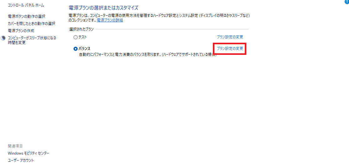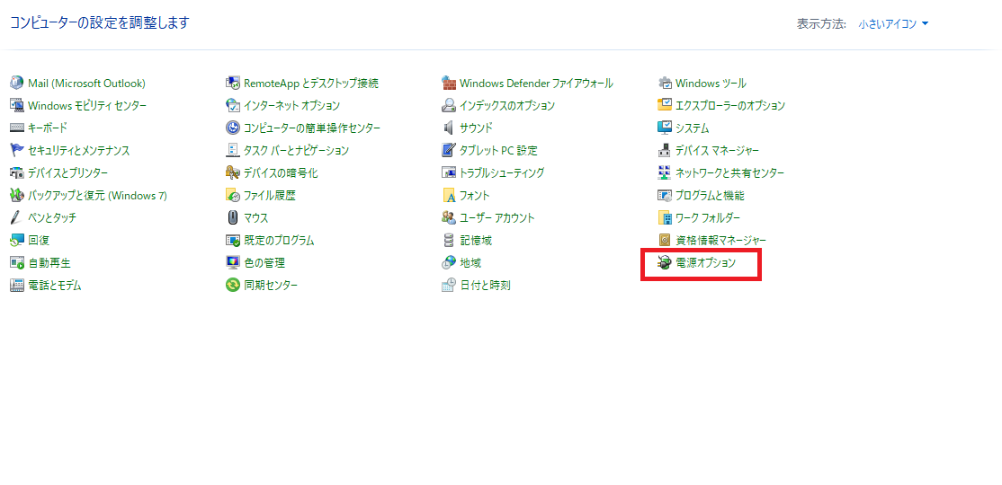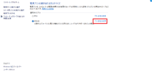 再起動後、「電源オプション → 詳細設定」を開くと、