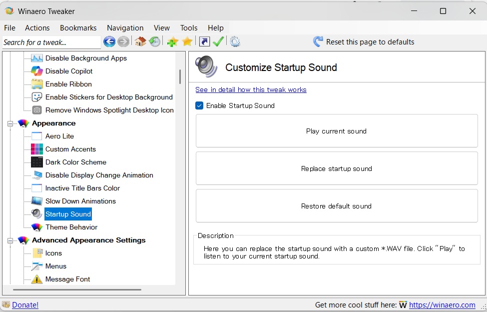 Winaero Tweakerで起動音を変更する