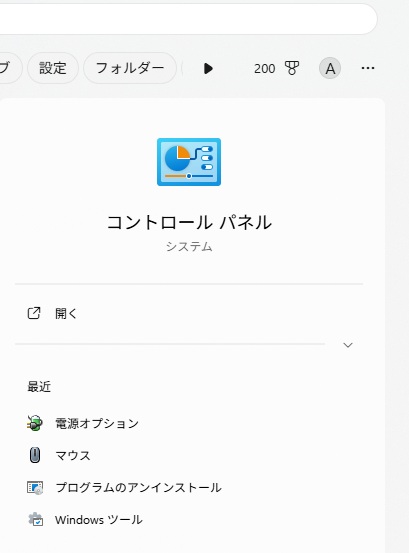 ① コントロールパネルを開く