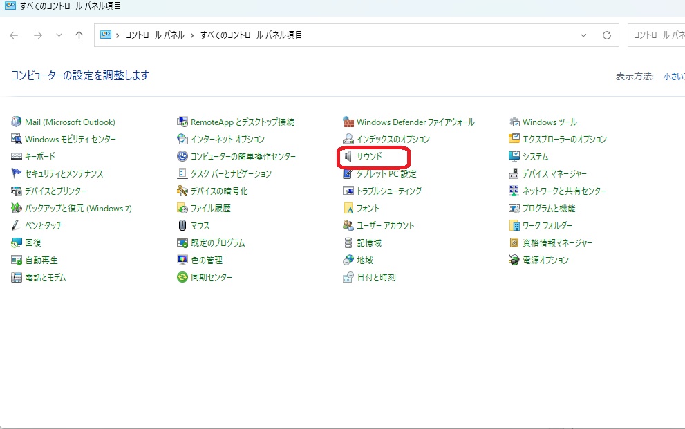 サウンド設定画面を開きます。