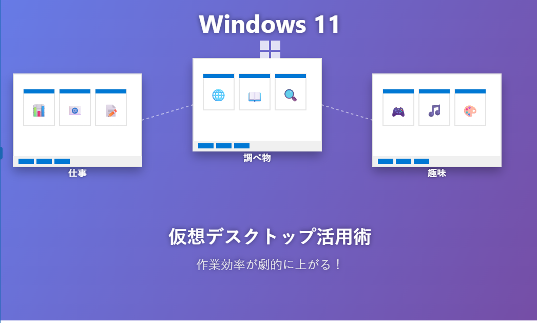 こんにちは!今回は、Windows 11に搭載されている「仮想デスクトップ」機能について紹介します💡
